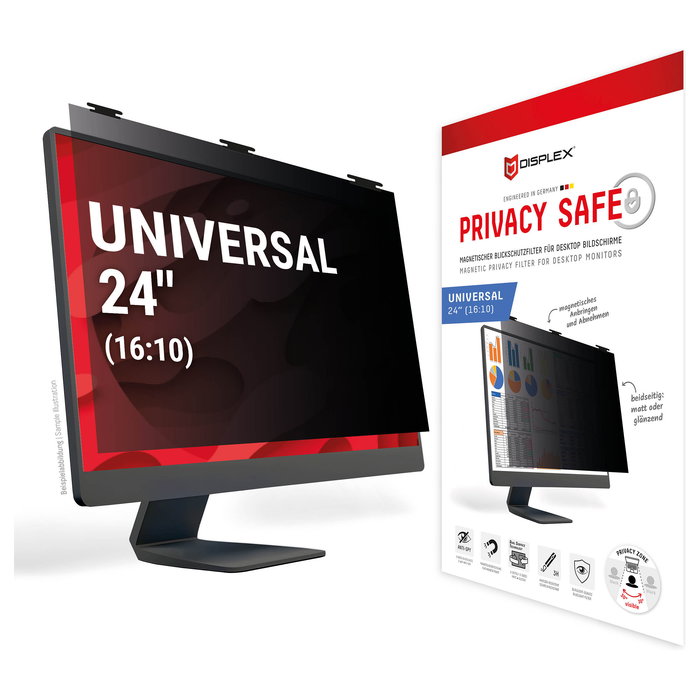 Displex 02087, 61 cm (24"), 16:10, Monitor, Filtro de privacidad para pantallas sin marco, 3H, Brillo/mate