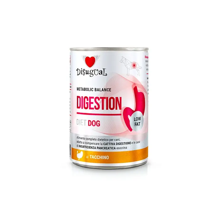 El Disugual Diet Dog Digestion Low Fat Pavo 6x400 gr es el alimento húmedo perfecto para perros que requieren una dieta específica para una digestión sensible. Formulado por la reconocida marca Disugual, este producto ofrece una receta baja en grasa con pavo, ideal para apoyar la salud digestiva de tu mascota.