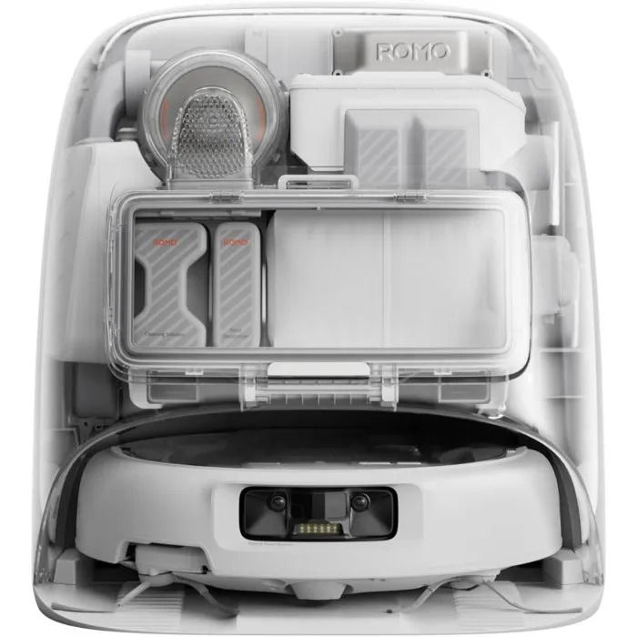 DJI ROMO P - Robot aspirador y fregona con base de carga - Diseño transparente - Succión de 25.000 Pa - Detección con precisión milimétrica - 200 días sin mantenimiento