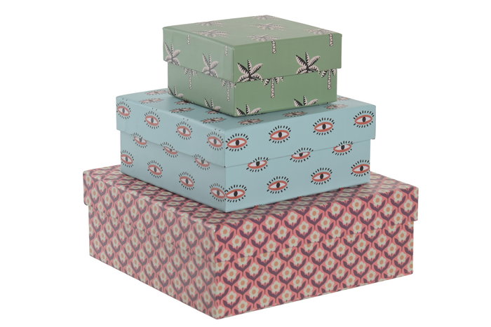 DKD Home Decor Caja Urban Tropical Boho Verde Azul Coral 21x21x8 cm Set 3