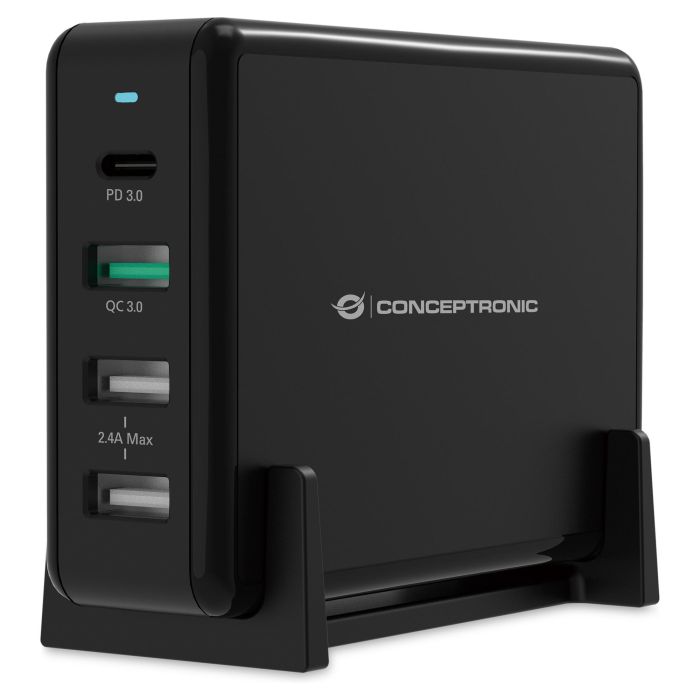 Conceptronic OZUL01B Cargador USB-C 65W Carga Rápida PD 3.0 y QC 3.0 para Nintendo Switch, iPad, iPhone, Samsung Galaxy, con Protección - Negro