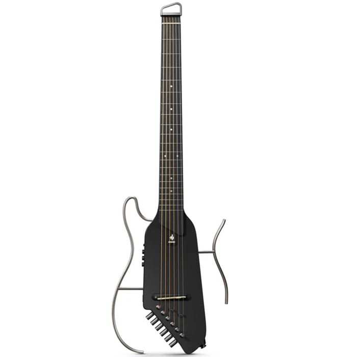 Guitarra ligera como un portátil, con pastillas originales que dan un sonido cálido y lleno. Diseño sin pala y afinadores inferiores ocultos. Marcos superior e inferior desmontables. La mejor elección para largas sesiones de práctica. Salida de auriculares, salida MP3 y salida de 6.35mm para actuaciones o practicar en casa. Pastilla con batería de litio incorporada que proporciona hasta 50h de uso con auriculares o un mes con amplificador. Mástil asimétrico que puede satisfacer tanto a principiantes como a virtuosos de la guitarra por su curvatura gradual y que además ayuda a reducir la fatiga de la muñeca incluso con largas horas de práctica. Botón antifase que invierte la señal de salida 180 grados, eliminando la realimentación y permitiendo que la guitarra tenga un sonido más puro. Botones de volumen y tono. Trastes redondos personalizados que evitan cortes en los dedos durante la práctica y son muy adecuados para principiantes. Correa de guitarra 2 en 1 que sirve tanto para la guitarra como para la bolsa, con hebilla de liberación rápida. Cuerpo de caoba en acabado en negro.