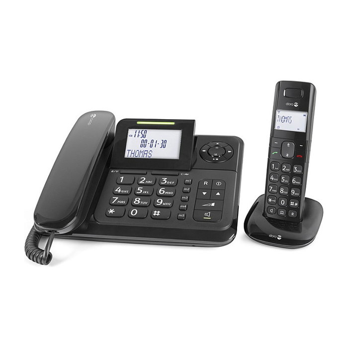 Doro Comfort 4005 Combo - Teléfono DECT/analógico con contestador automático, altavoz, pantalla, 50 entradas y 2 móviles incluidos
