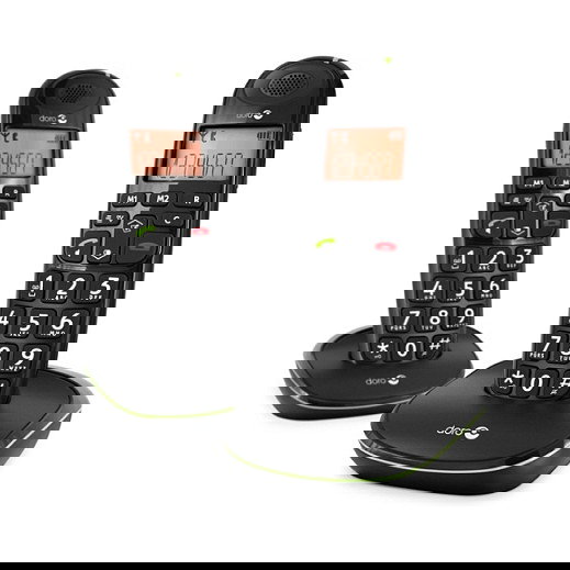 Doro PhoneEasy 100w Duo - Teléfono DECT con Altavoz, 20 entradas, Negro