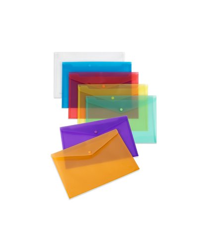 Sobre con cierre de broche y solapa en polipropileno translúcido de 200 micras. Medidas: 330 x 235 mm.