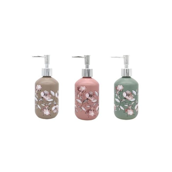 DKD Home Decor Dosificador Romantico Marron Claro Rosa Palo Cristal Abs Flores 7 x 18.5 x 7 cm 400ml (12 Unidades)