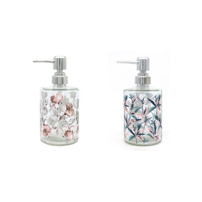 DKD Home Decor Dosificador Romantico Rosa Verde Cristal Abs 400ml 8 x 17 x 8 cm (12 Unidades)