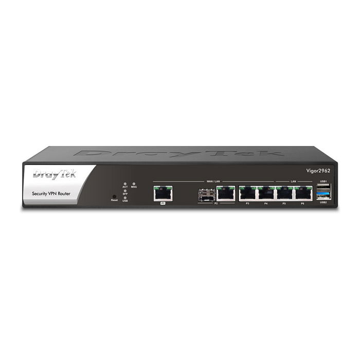 DrayTek Vigor 2962 Router de Negocio con 2.5 Gigabit Ethernet, 4 Puertos LAN, VPN de 200 Túneles, Firewall, USB, Montaje en Rack, Negro/Blanco