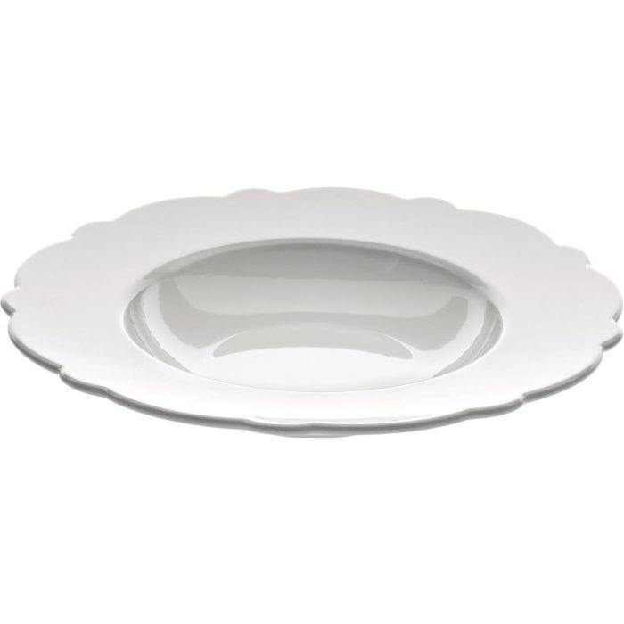 - Plato hondo en porcelana blanca con decoración en relieve.