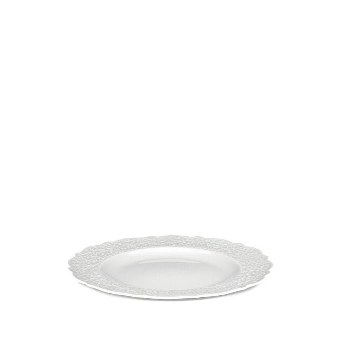 - Plato plano en porcelana blanca con decoración en relieve.