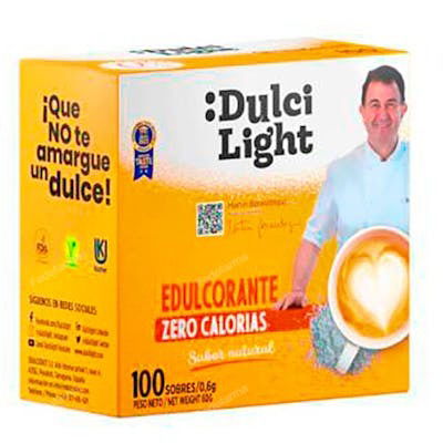 Dulcilight Edulcorante Zero 100 Sobres Apto Diabéticos Vegano Sin Gluten Keto Friendly