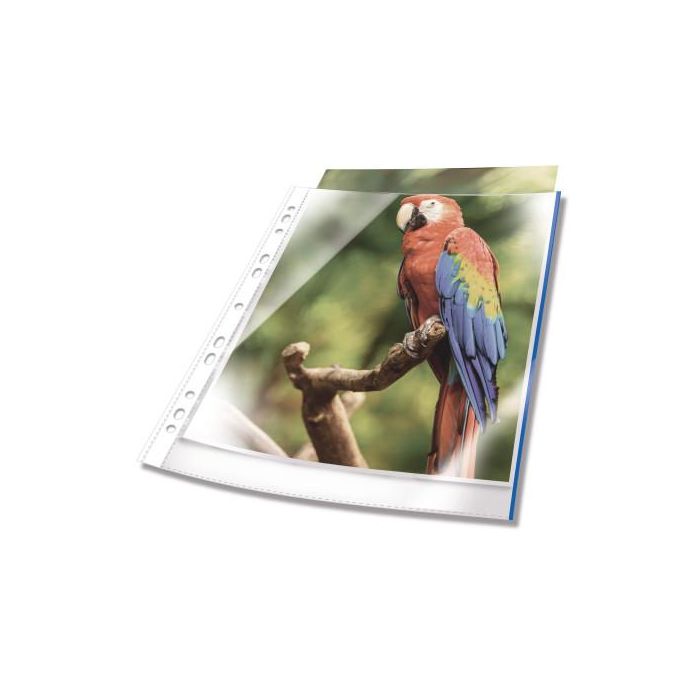 Durable 265506 Protector de Hojas A4 Polipropileno (PP) Neutras Acabado Cristal Calidad Premium con Refuerzo Azul Transparente Bolsa 25 Unidades
