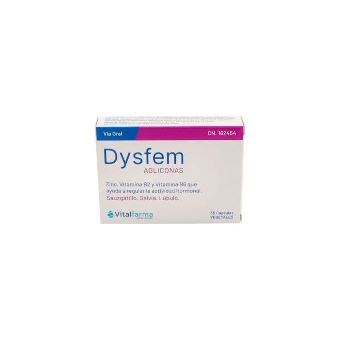 VITALFARMA Dysfem 30 Cápsulas - Complemento alimenticio para regular actividad hormonal con Isoflavonas de Soja, Zinc y Vitamina B6