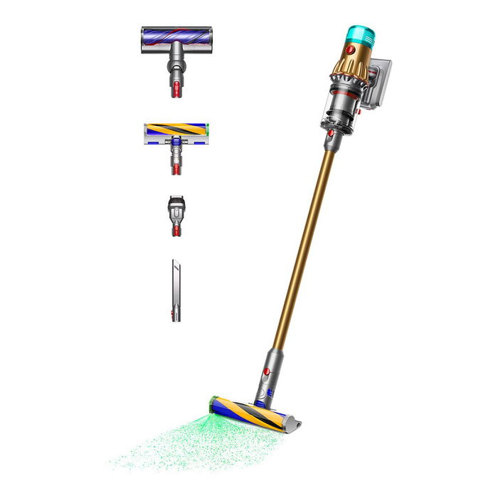 Dyson V12 Detect Slim Absolute, Aspiradora escoba 2 en 1, Sin bolsa, Oro, Secar, HEPA, Ciclónico