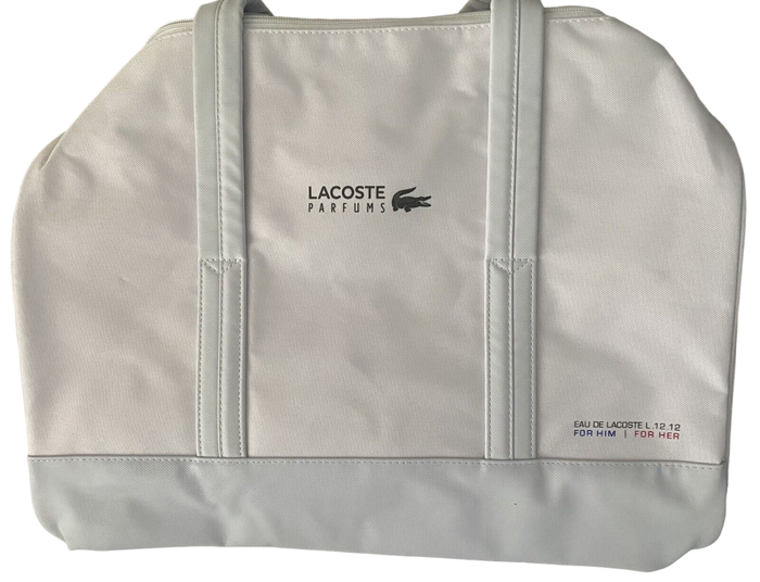 Eau de Lacoste L.12.12, Poliéster, Bolsa de tela, Bolsa de fin de semana, Blanco, Unisex, 16 x 10 x 10 pulgadas