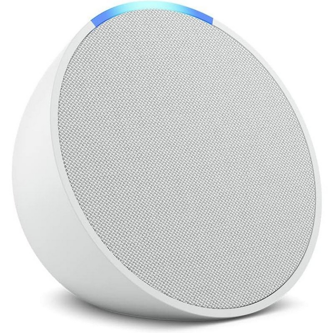 El Echo Pop destaca por su diseño redondeado y elegante, disponible en color blanco, que se adapta perfectamente a escritorios, mesillas o estanterías. Pese a su tamaño, incorpora todas las funciones de Alexa, permitiendo controlar tu entorno digital con solo la voz.