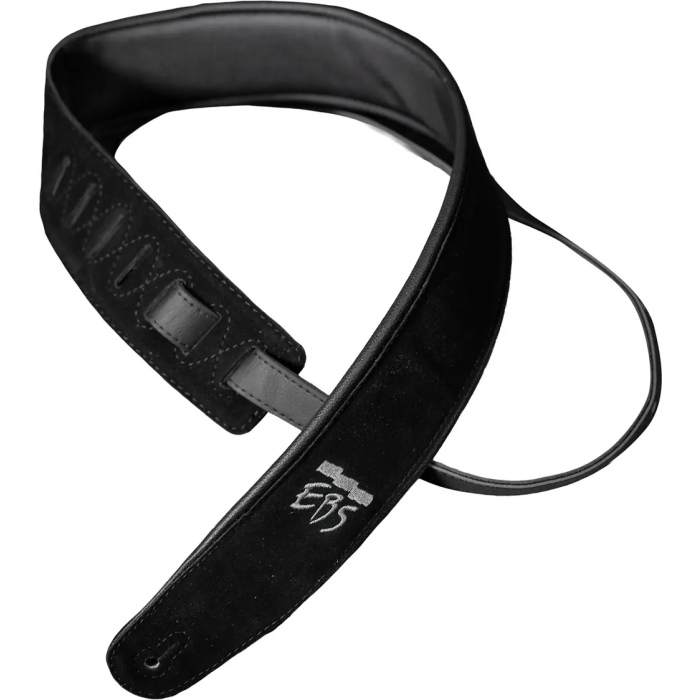 EBS Correa para Guitarra o Bajo Suede - Correa de Vinilo Sintético Acabado Gamuza, Acolchada, Negra