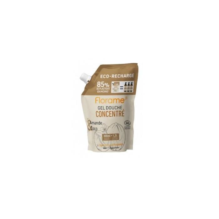 FLORAME Eco Recarga Gel de Ducha Concentrado Almendras-Coco 300 ml - Rellena 3 veces