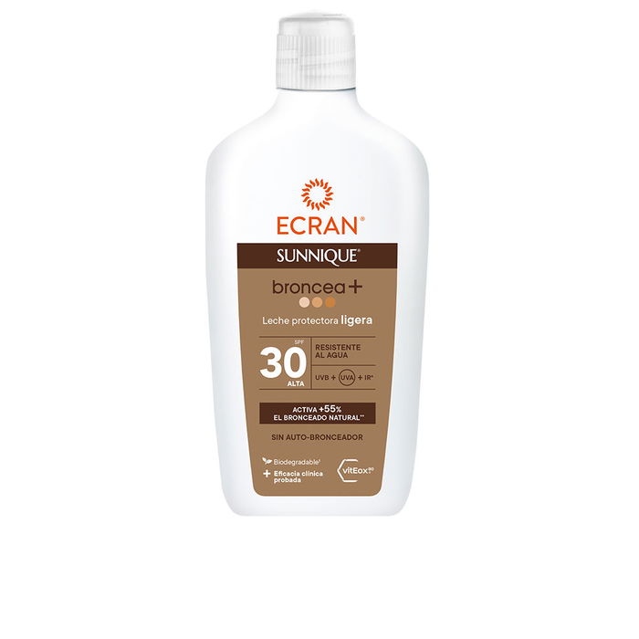 Ecran SUNNIQUE BRONCEA+ Leche Protectora Corporal SPF30 con VitEox80® y PureBronze, Potencia Bronceado Natural, 370 ml