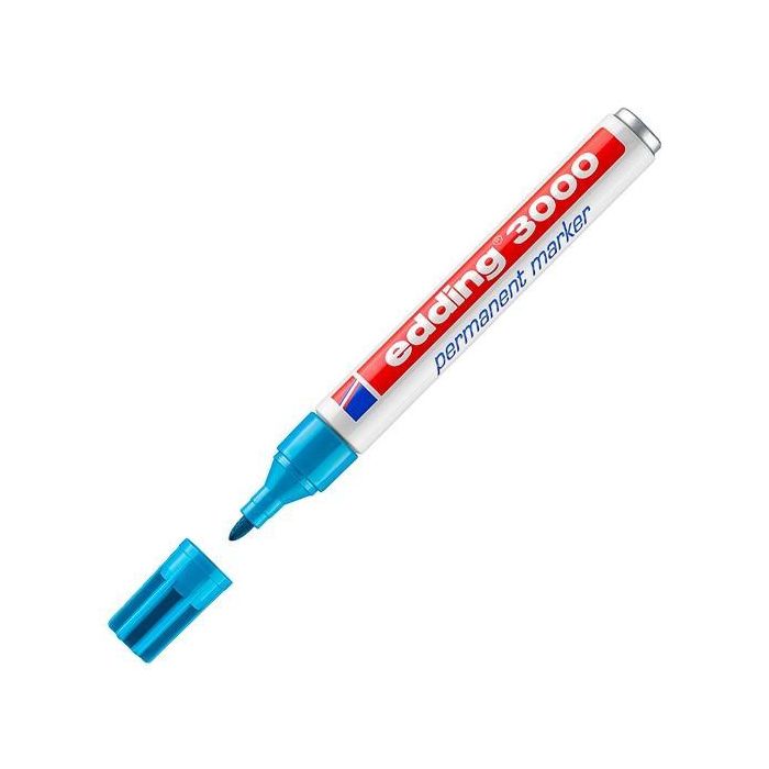 Edding Marcador Permanente 3000 Azul Claro, Tinta Resistente para Múltiples Superficies, Grosor Trazo 1.5-3mm