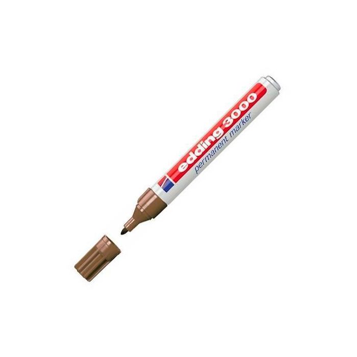 Edding Marcador Permanente 3000 Marrón para Papel, Cartón, Metal, Plástico y Vidrio con Trazo 1.5-3mm