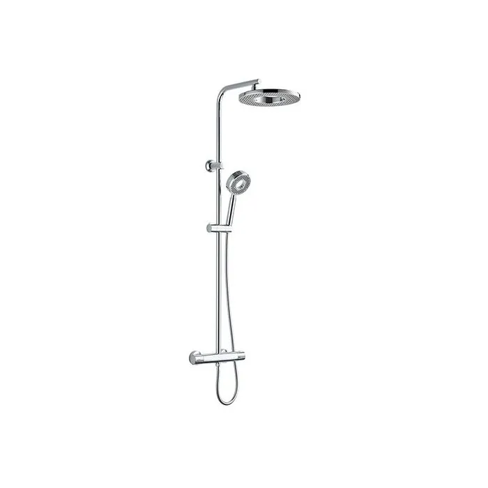 Edouard Rousseau AAAPS00207 Columna de Ducha con Mezclador Termostático, Ducha de Techo Redonda y Ducha de Mano, Cromado