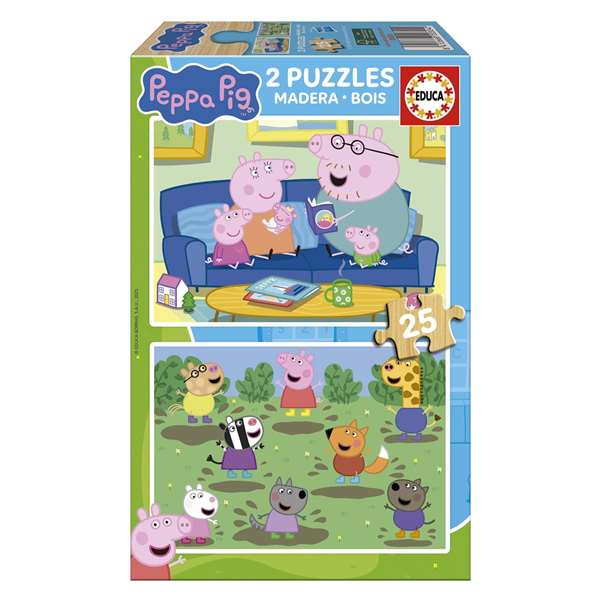 Educa Puzzle de Madera Peppa Pig - 2 Puzzles de 25 Piezas Cada Uno, Edad Recomendada 3+