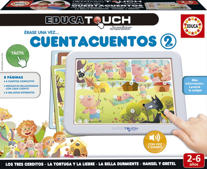 Con Educa Touch Cuenta Cuentos Vol. 2, los niños a partir de 2 años se divierten escuchando y viendo sus cuentos favoritos mientras adquieran conocimientos básicos. Disfruta escuchando las 4 historias y aprende con las actividades asociadas a ellos. Incluye 4 cuentos completos y 8 actividades didácticas. 3 modos de juego: cuentacuentos, exploración y preguntas. Para niños y niñas a partir de 2 años.