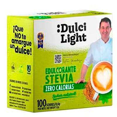 Indicaciones: DulciLight Stevia es un edulcorante cuyo consumo no aporta valor calórico a la ingesta diaria y consecuentemente ayuda a las personas que están en dieta o déficit calórico. Producto vegano, sin gluten, apto para diabéticos. Es apto para cocinar y Keto friendly.