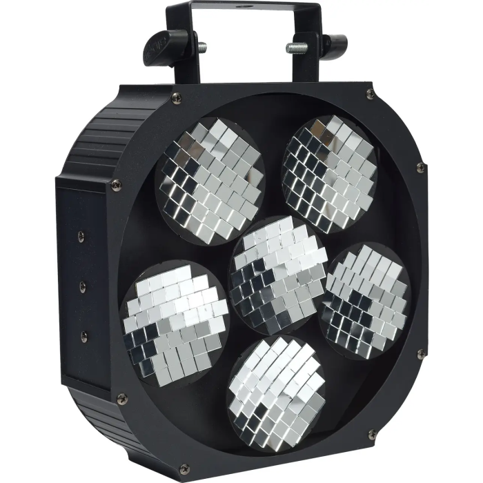 - Efecto de bola de espejos motorizada- Requiere una fuente de luz externa para funcionar (Beam o Spot)- 6 discos motorizados cubiertos de un mosaico de espejos- Modos: automático, detección de música, DMX- Número de canales DMX: 9- Consumo: 20 W- Peso: 2,9 kg- Dimensiones: 320 x 320 x 110 mm- Entregado con cable de alimentación y eslinga de seguridad