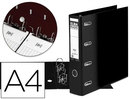 Elba Archivador de Palanca DIN A4 Negro Lomo 75 mm con Doble Mecanismo de 4 Anillas Rado