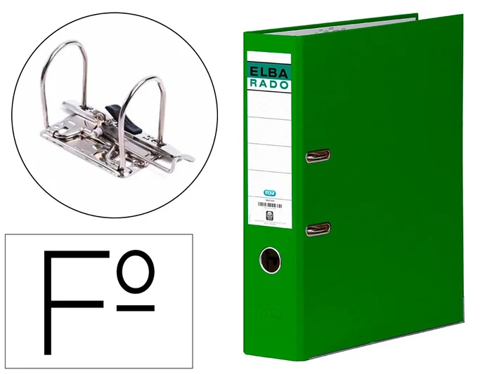 Elba Archivador de palanca Folio Verde Lomo 80 mm Carton forrado 2 Anillas 75 mm Rado Chic