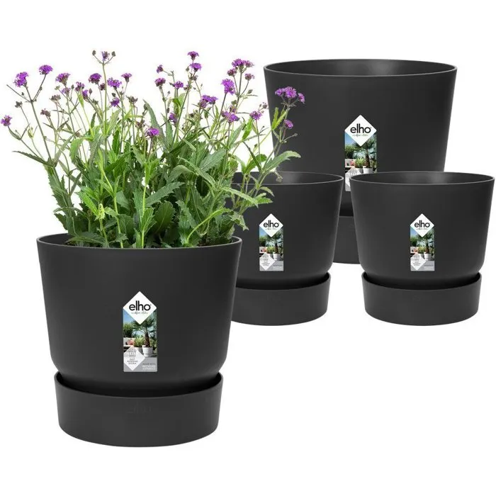 ELHO Juego de 2 maceteros redondos Greenville - Ø14xH13,4 cm y Ø16xH15,3 cm - 7 L - Negro