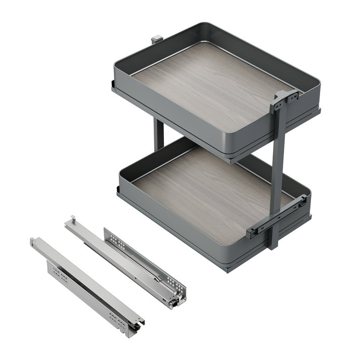 Emuca Carro extraíble Harmony con cierre suave, Módulo ancho 400mm alto 700mm, Acero y Madera, Gris antracita