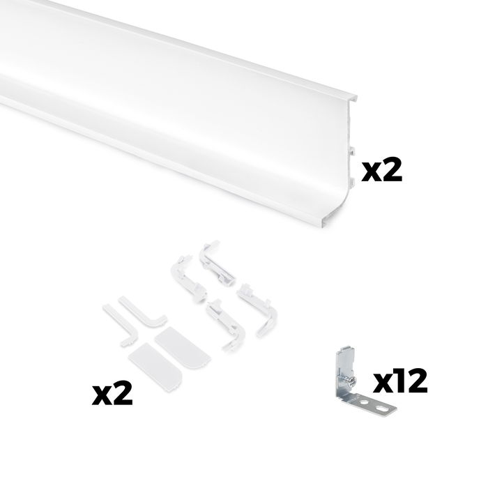 Emuca Kit de 2 perfiles superiores Gola para muebles de cocina, longitud 2,35m, con accesorios, Aluminio, Pintado blanco