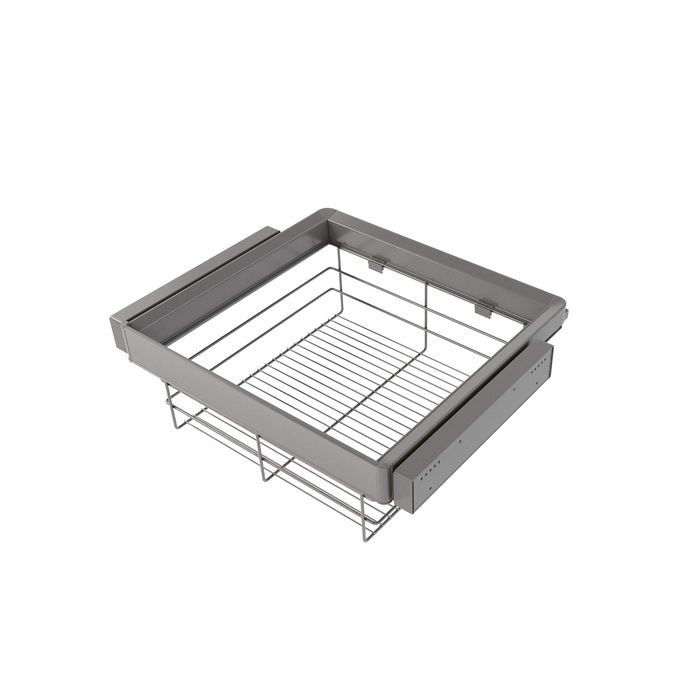 Emuca Kit de cajón de alambre y bastidor regulable Quartz para armarios, guías de cierre suave y extracción total, Módulo 60cm, Acabado Titanio