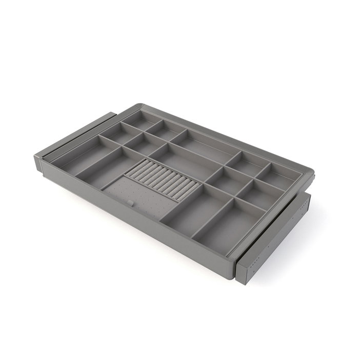 Emuca Kit de cajón organizador y bastidor regulable Quartz para armarios, guías de cierre suave y extracción total, Módulo 80cm, Acabado Titanio