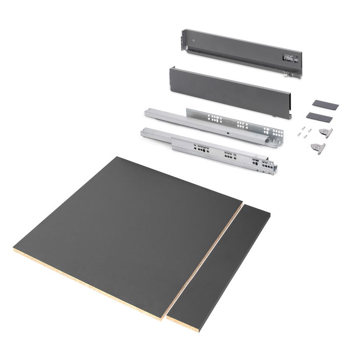 Emuca Kit de cajón para cocina o baño Vertex de altura 93mm con regulación 3D, tableros incluidos, módulo 600mm, Gris antracita