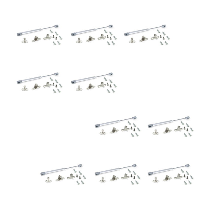 Emuca Lote de 10 pistones para puertas elevables H, 8kg, recorrido 80mm, con enganches, Acero y Plástico, Gris metalizado