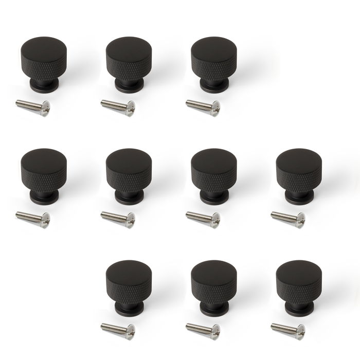 Emuca Lote de 10 pomos para mueble Argos, diámetro 30mm, Aluminio, Pintado negro
