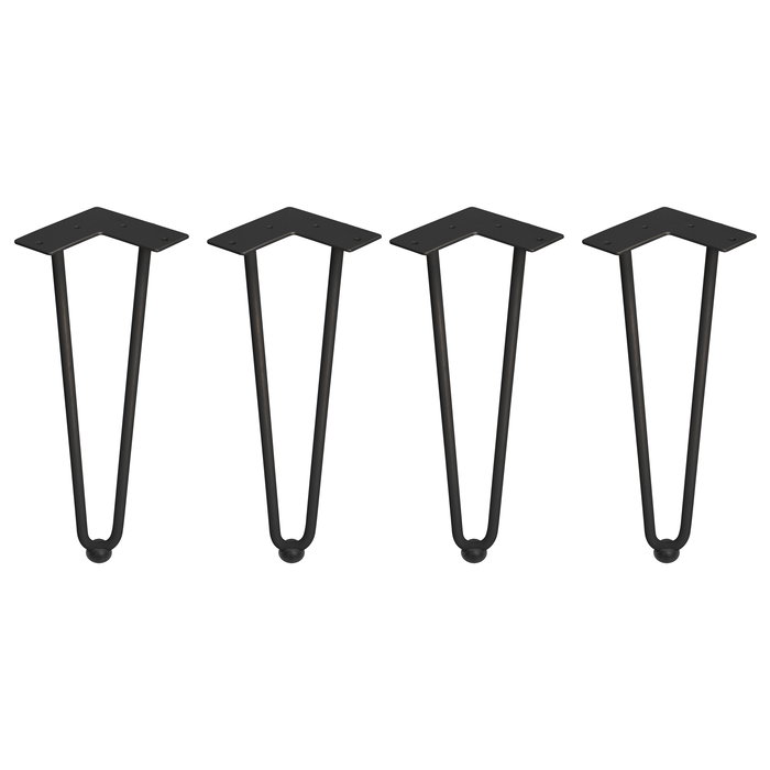 Emuca Lote de 4 patas Hairpin de 2 varillas para mesa, altura 400mm, Acero, Pintado negro