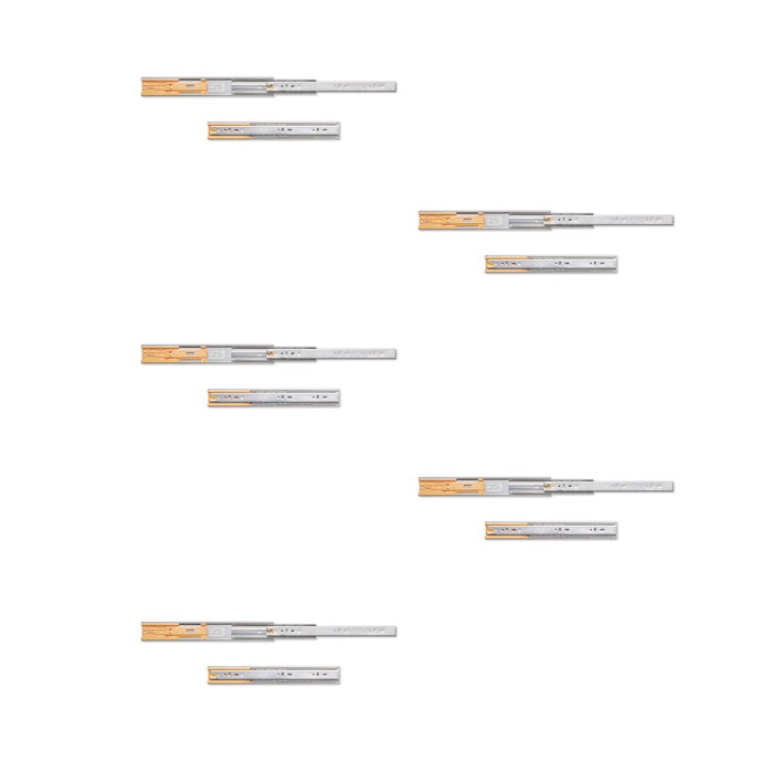 Emuca Lote de 5 juegos de guías para cajones, de bolas, altura 45mm, profundidad 300mm, extracción total, cierre suave, Cincado