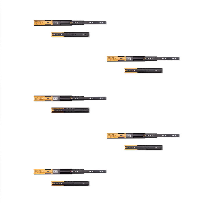 Emuca Lote de 5 juegos de guías para cajones, de bolas, altura 45mm, profundidad 300mm, extracción total, cierre suave, Negro