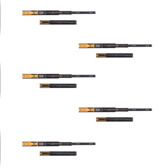 Emuca Lote de 5 juegos de guías para cajones, de bolas, altura 45mm, profundidad 350mm, extracción total, cierre suave, Negro