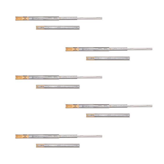 Emuca Lote de 5 juegos de guías para cajones, de bolas, altura 45mm, profundidad 500mm, extracción total, cierre suave, Cincado