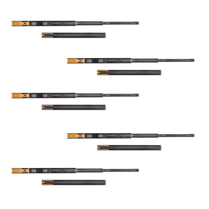 Emuca Lote de 5 juegos de guías para cajones, de bolas, altura 45mm, profundidad 550mm, extracción total, cierre suave, Negro
