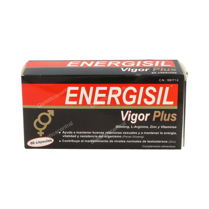 Indicaciones: Complemento alimenticio a base de Ginseng, L-Arginina, vitaminas y Zinc, que contribuye al mantenimiento de niveles normales de testosterona. Energisil Vigor Plus es un suplemento nutricional formulado con una combinación de ingredientes activos que incluyen ginseng, l-arginina, vitaminas y zinc, los cuales actúan de manera sinérgica para ayudar a proporcionar una amplia variedad de beneficios para el organismo. El ginseng es una planta con propiedades adaptógenas que ayuda al cuerpo en situaciones de estrés y a aumentar la energía. Energisil también contiene l-arginina, es un aminoácido que se utiliza para sintetizar óxido nítrico, una sustancia que ayuda a la normal circulación sanguínea y promover la vasodilatación, lo que a su vez puede ser útil para el normal flujo de sangre y oxígeno a los músculos. Además, este suplemento nutricional también contiene vitaminas y zinc, nutrientes esenciales que son necesarios para ayudar al bienestar general. El zinc es especialmente importante para la producción de testosterona, lo que puede ayudar a mantener niveles normales de esta hormona en el cuerpo.