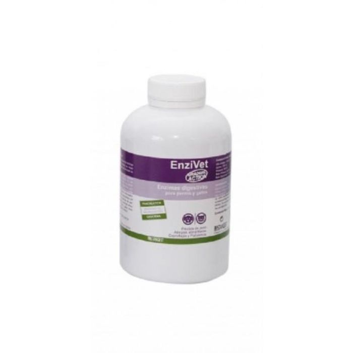 - COMPOSICION Lactasa: 15 mg, Amilasa: 15 mg, Lipasa: 15 mg, Celulasa: 15 mg, Proteasa: 15 mg. INDICACIONES Permite una mejor asimilación de los nutrientes al favorecer su biodisponibilidad y es beneficioso en animales de cualquier edad, especialmente en aquellos de edad avanzada o bien que estén padeciendo procesos como: Sindrome de mala absorción, mal aliento provocado por digestiones deficientes, problemas digestivos, diarrea, pancreatitis exocrina, problemas de peso, trastornos del sistema inmunitario, letargia, flatulencias, problemas de piel, ca¡da de pelo excesiva, alergia, problemas articulares coprofag¡a. Puede usarse en perros, gatos, pájaros, conejos, caballos y animales exóticos. POSOLOGIA 1 comp. 2 veces/d¡a por cada 10 Kg de peso mezclada con la comida.