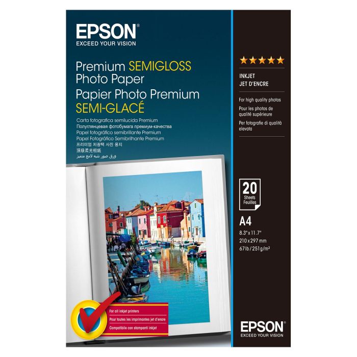 Epson Premium Semi-Gloss Photo Paper - A4 - 20 hojas, Semi-brillo, 251 g/m², Blanco, 20 hojas, Expression Premium XP-900 Expression Premium XP-830 Expression Premium XP-820 Expression Premium..., 1 pieza(s)