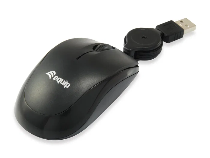 Equip 245103 Ratón Óptico USB para Viajes, Cable Retráctil, Ambidiestro, 1000 DPI, Negro
